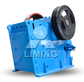 欧版鄂式破碎机的破碎方式也为曲动挤压型。工作时,电动机驱动皮带和皮带轮,通过偏心轴使动鄂上下运动,当动颚上升时,肘板和动颚间夹角变大,从而推动动颚板向定颚板接近,物料即通过两颚板的挤、压、搓、碾被多种粉碎;当动颚下行时,肘板和动颚间夹角变小,动颚板拉杆、弹簧的作用下离开定颚板,已被破碎物料在重力的作用下,经颚腔下部的出料口自由卸出。因而欧版颚式破碎机(粉石机)的工作是间歇性的,破碎和卸料过程在颚腔内交替进行。随着电动机的连续转动,破碎机动颚就会一直做周期性的压碎和排料,从而实现批量生产。